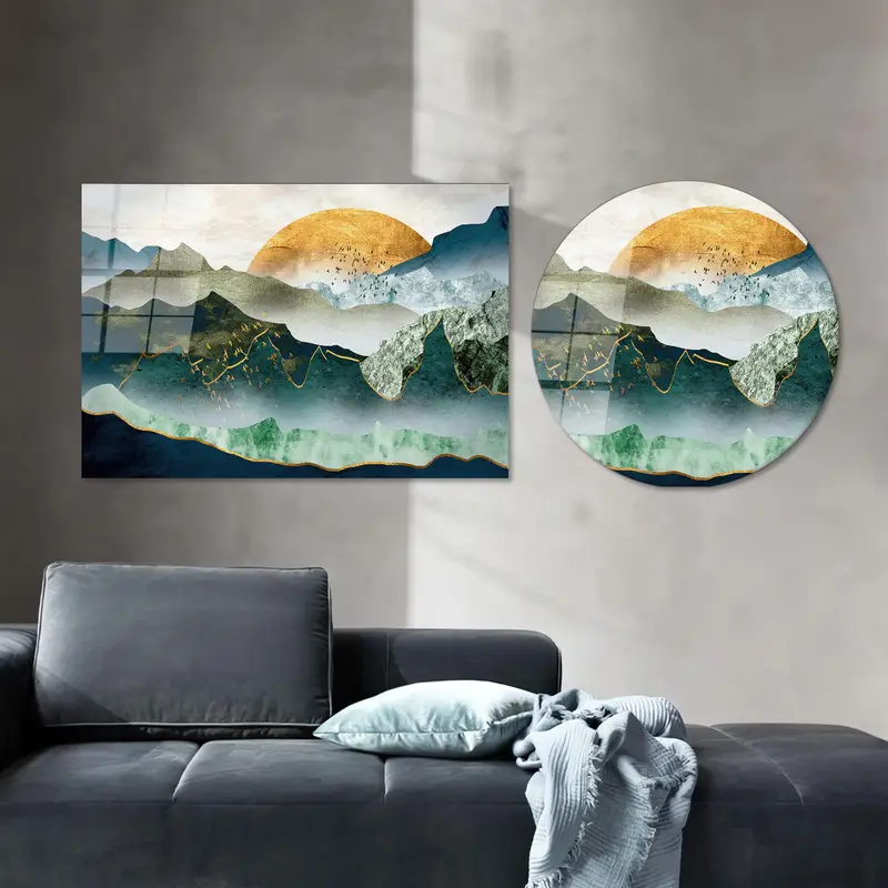 Luxury Abstract Mountain Canvas: Golden Sun Modern Art Print