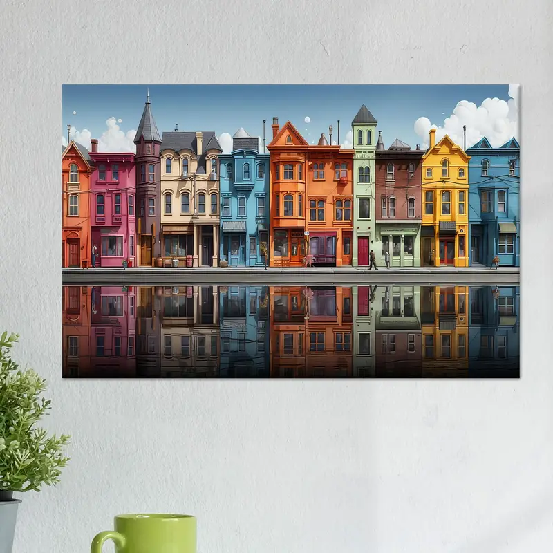 Colorful City Hause Canvas: Vibrant Printed Art for Your Space