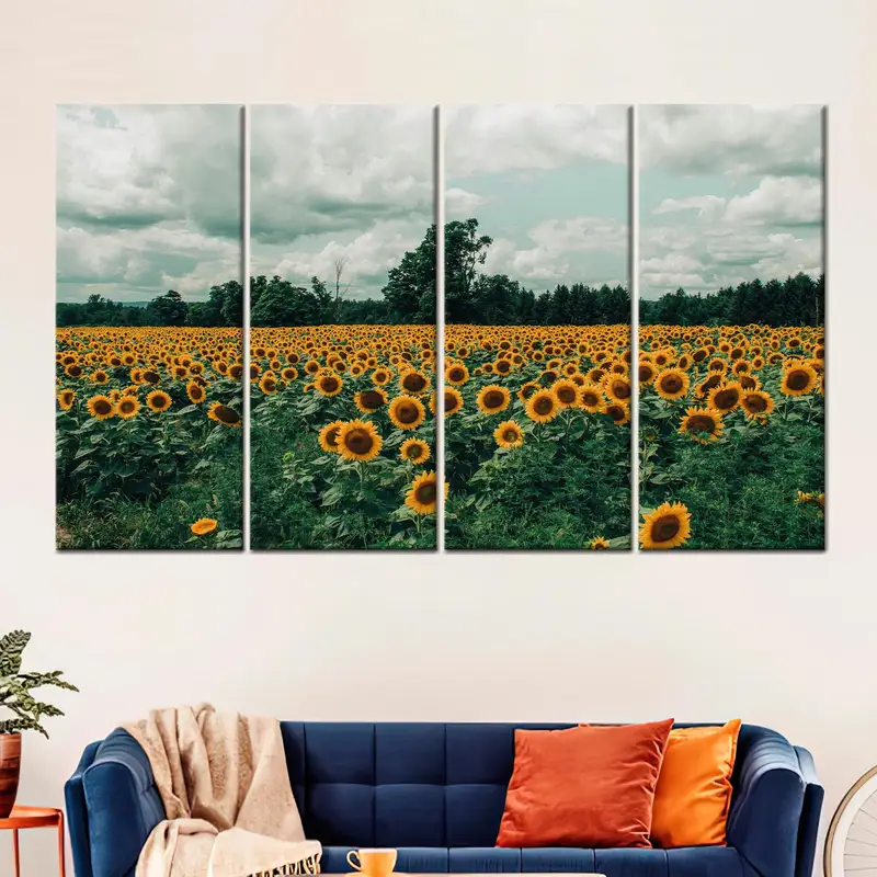Modern Sunflower Field Landscape Printed Canvas for Trendy Kitchen Decor