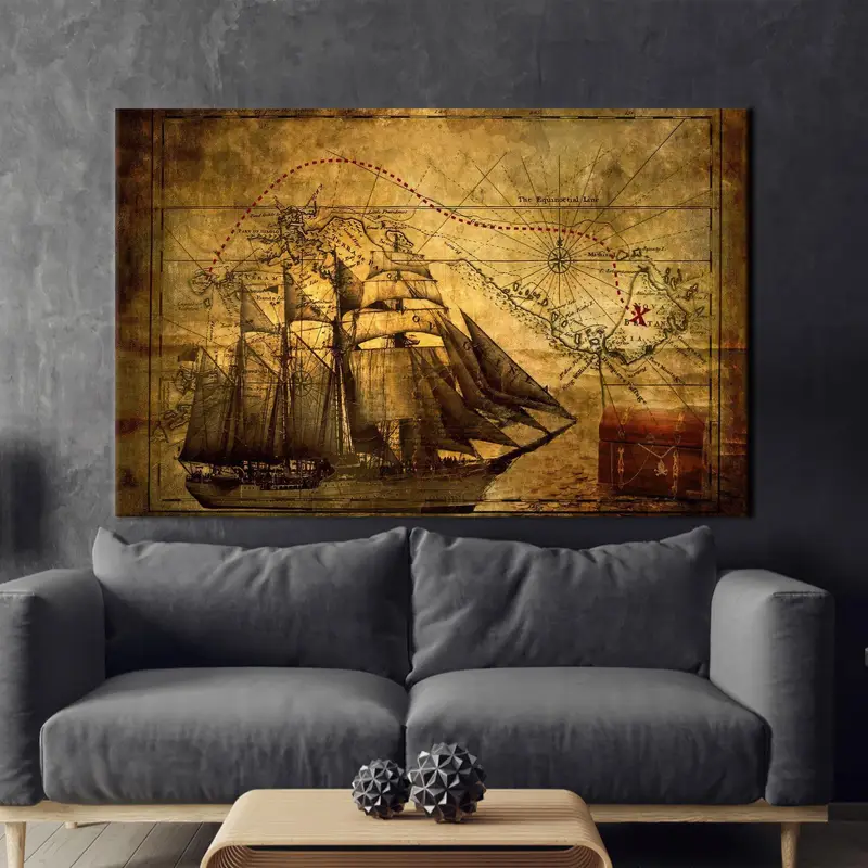 Pirate's Treasure Map Canvas: Vintage Nautical Adventure Art