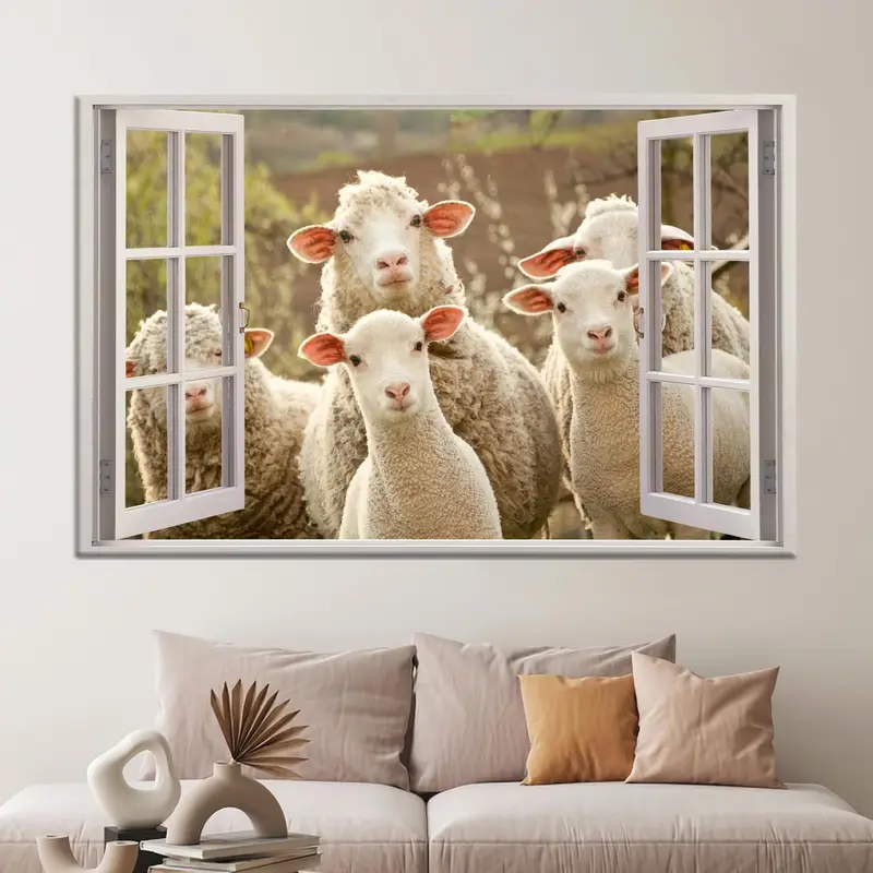 Coastal Sheep Window Landscape Canvas Print - Farmhouse Decor