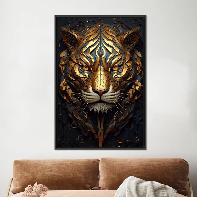Golden Tiger Abstract Canvas: Surrealist Art Print for Home Decor
