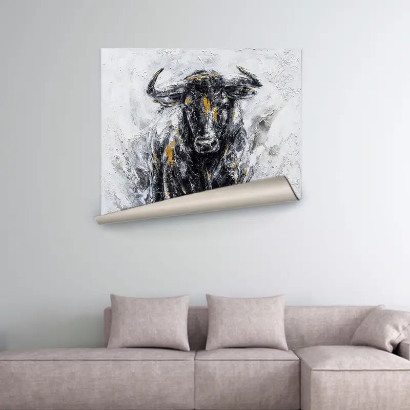 Modern Black Bull Canvas: Abstract Cow Art for Man Cave