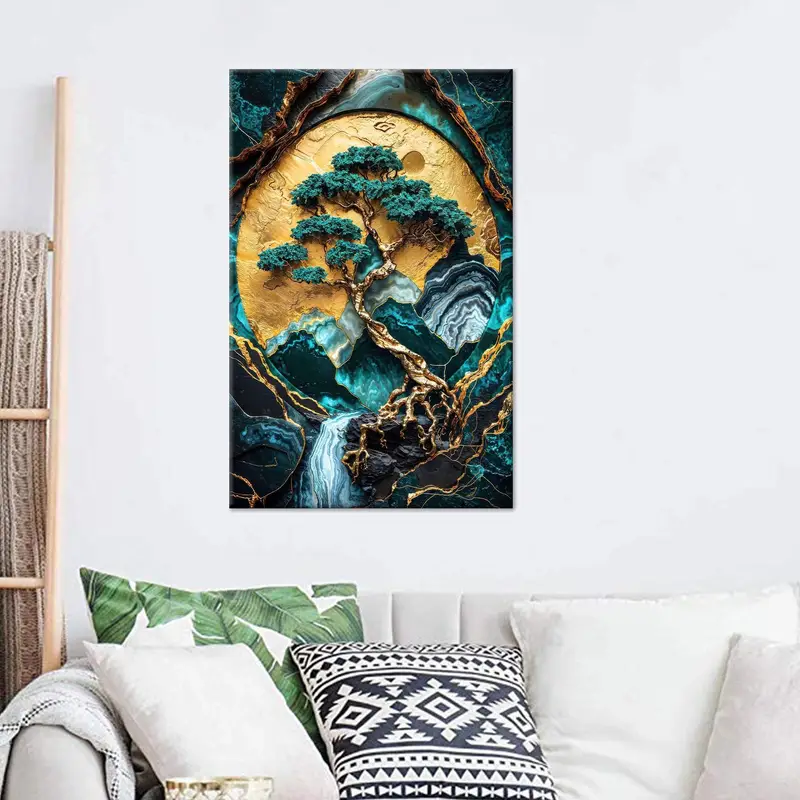 Modern Luxury Gold Moon Bonsai Tree Canvas Print