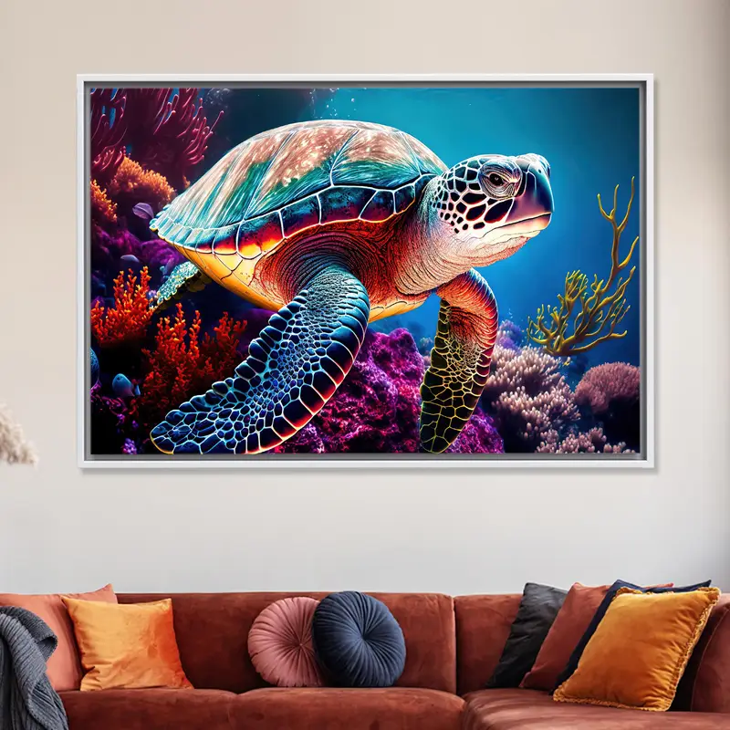 Elegant Sea Turtle Coral Seascape Printed Canvas Art