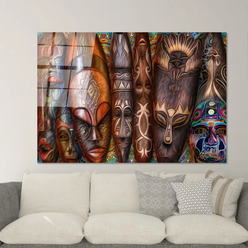 Trendy Brown Abstract African Mask Canvas Print - Elegant Decor