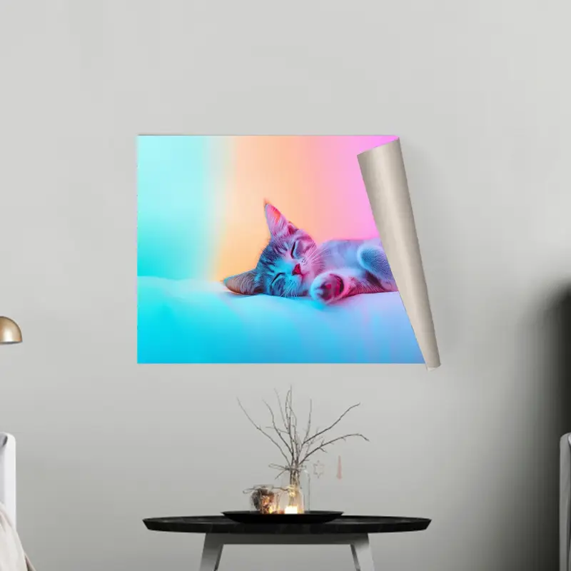 Elegant Printed Canvas: Sleeping Cat in Colorful Dreams