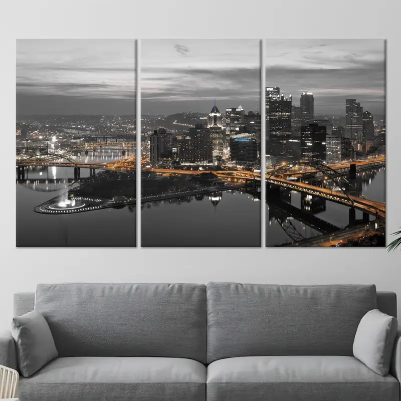 Pittsburgh Night View Canvas: Elegant City Landscape Print