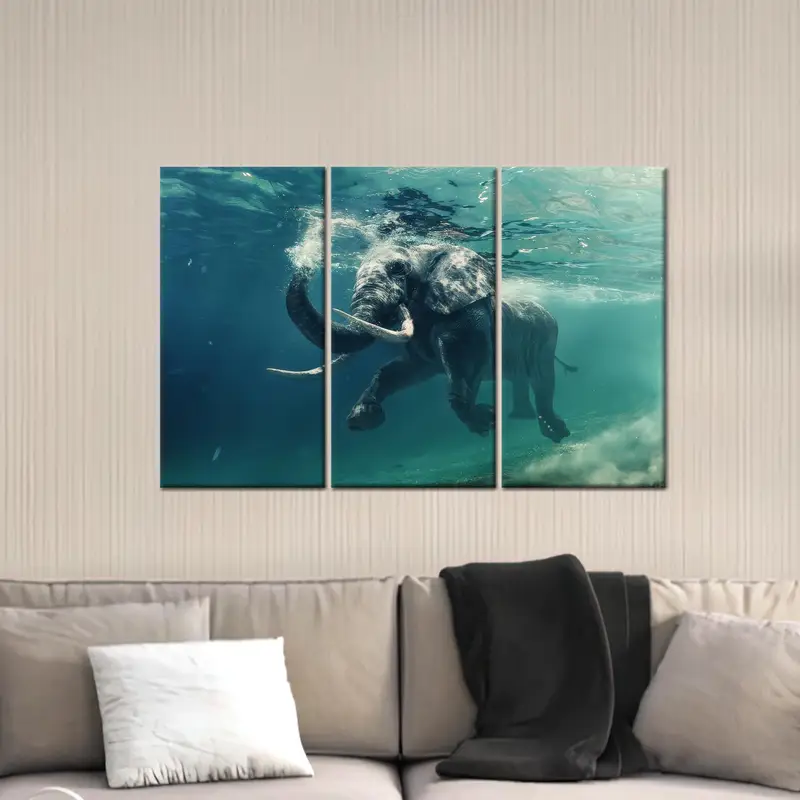 Modern Underwater Swimming Elephant Canvas for Kids Room
