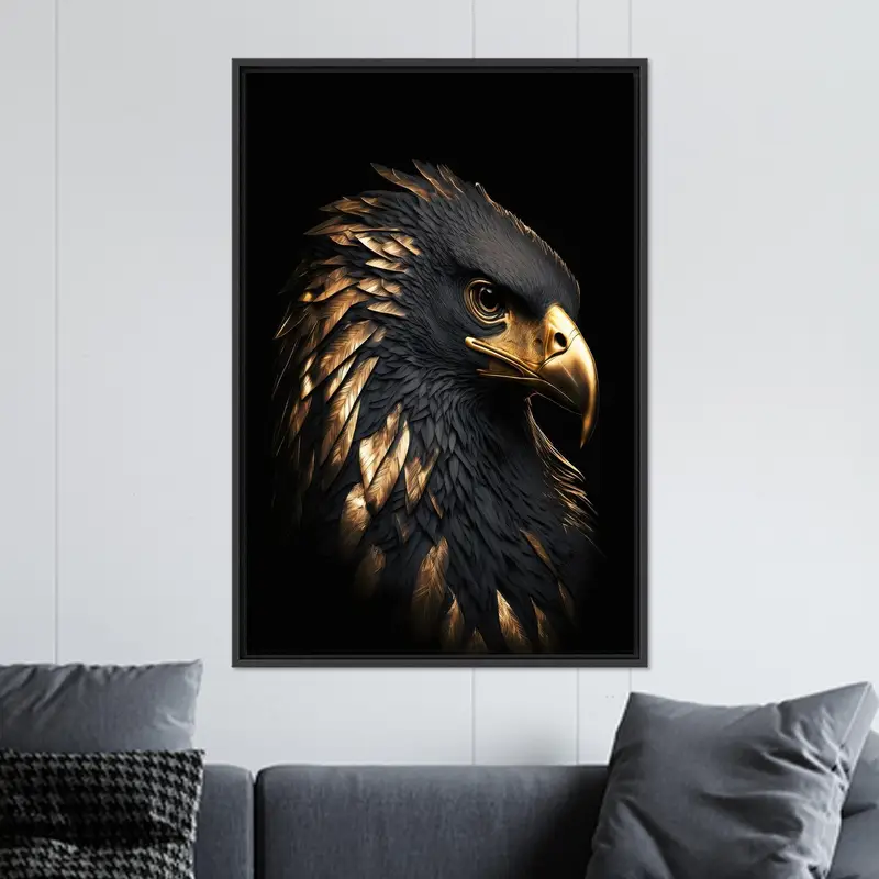 Modern Eagle Black Printed Canvas for Trendy Man Cave Decor