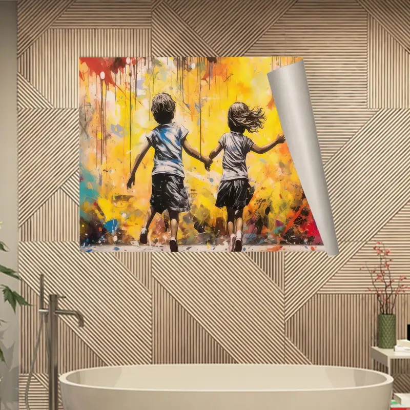 Modern Abstract Canvas: Banksy Running Children Art Print