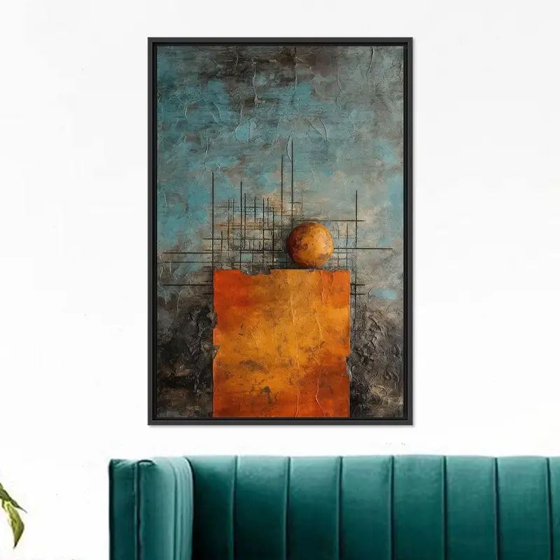 Minimal Orange Gold Geometric Pattern Printed Canvas Art
