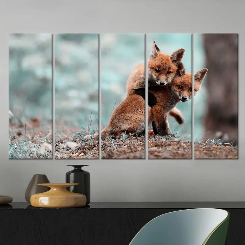 Elegant Fox Lover Canvas: Cute Forest Landscape Art Print