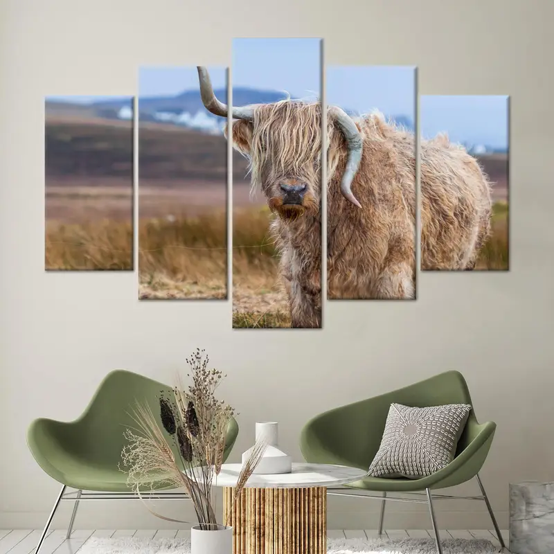 Elegant Highland Cow Canvas: Coastal Farmhouse Wall Art