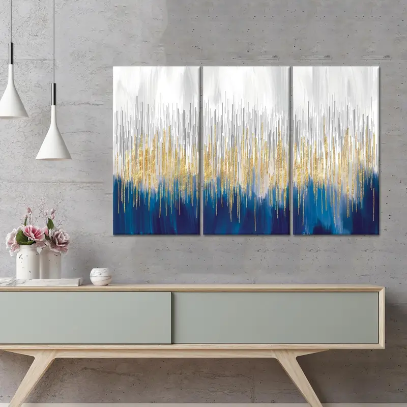 Golden Lines: Trendy Blue Printed Canvas for Elegant Decor