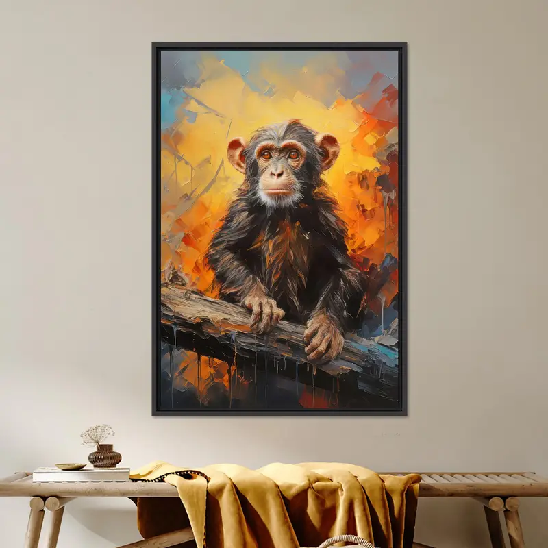 Wild Monkey Canvas: Abstract Orange & Brown Primate Art