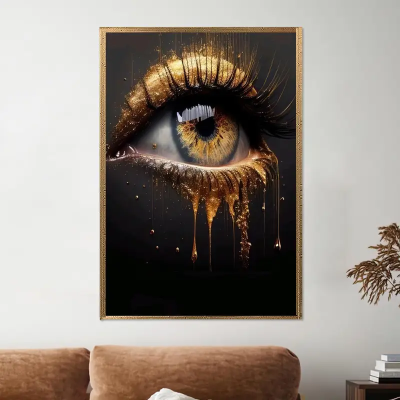 Golden Crying Eye Canvas: Elegant Colorful Eye Art Print