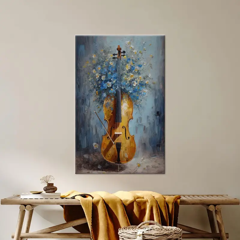 Elegant Blue Floral Canvas: Modern Abstract Cello Art Print