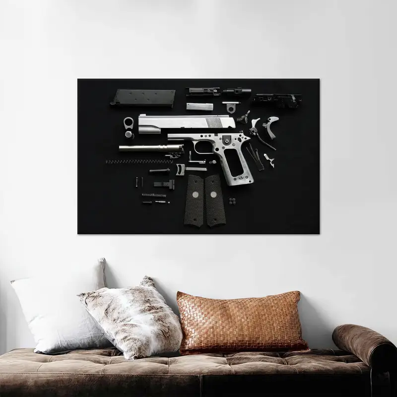 Elegant Black Canvas Print: Gun Art for Man Cave Office