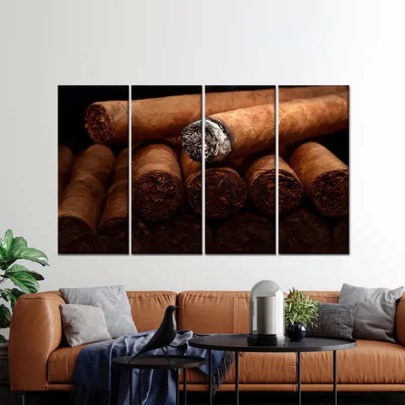 Elegant Cigar Rolling Tobacco Bar Canvas Print for Man Cave