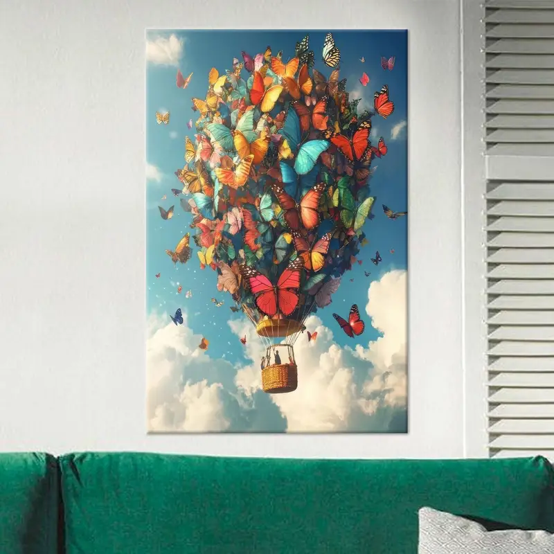 Vibrant Balloon Canvas: Abstract Hope & Colorful Butterflies