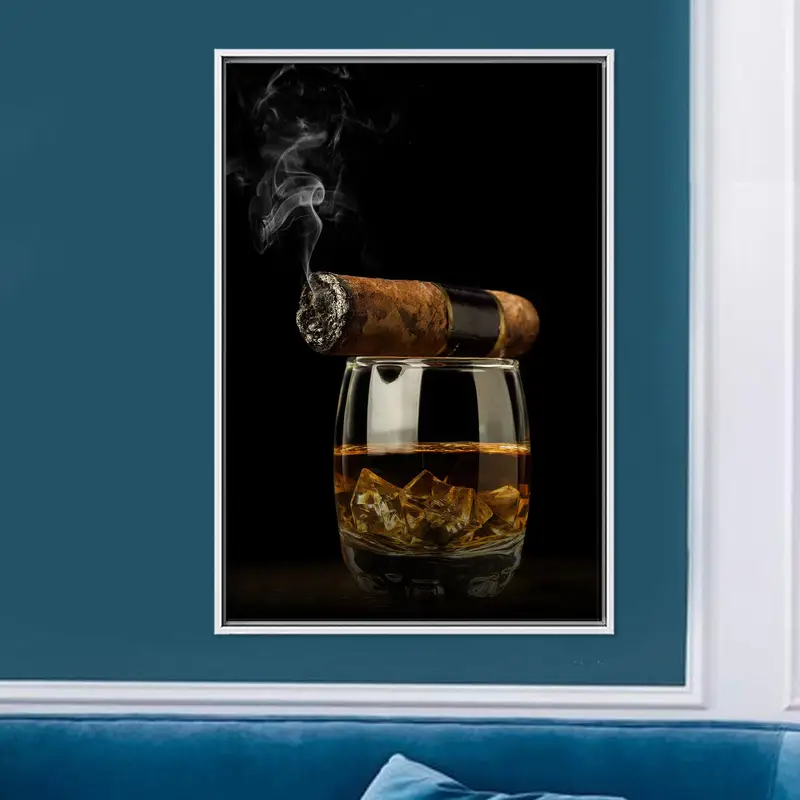 Elegant Canvas Art: Whiskey, Cigar, Man Cave Ambiance