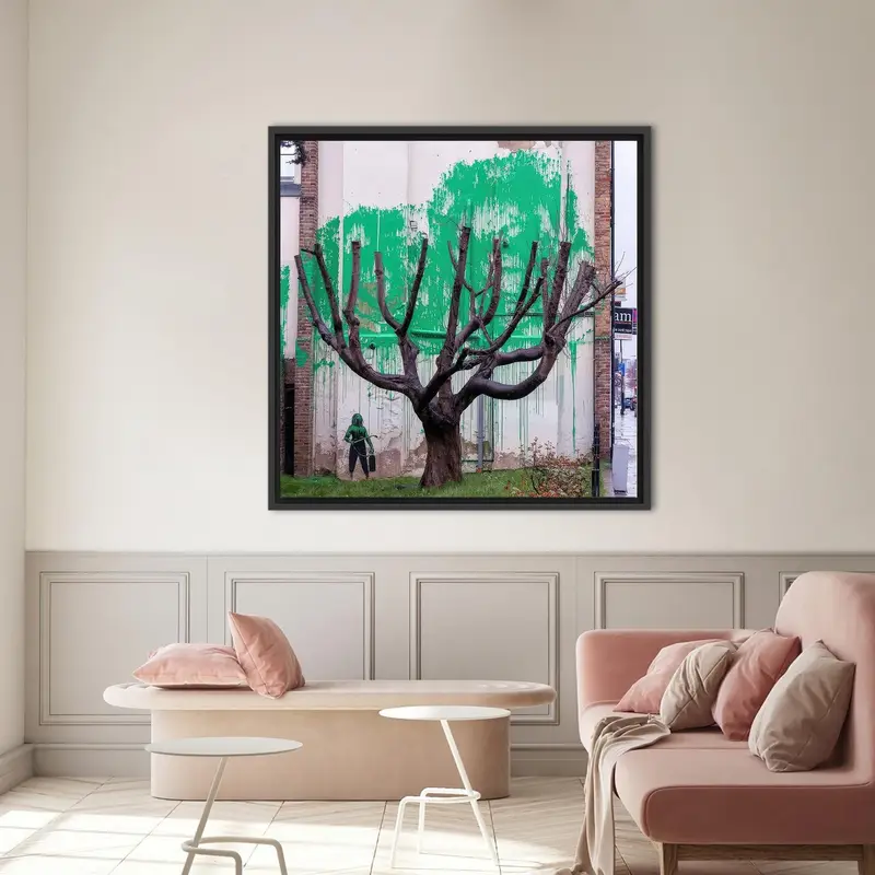 Vivid Banksy Tree Graffiti Canvas: London's Finsbury Park Hues