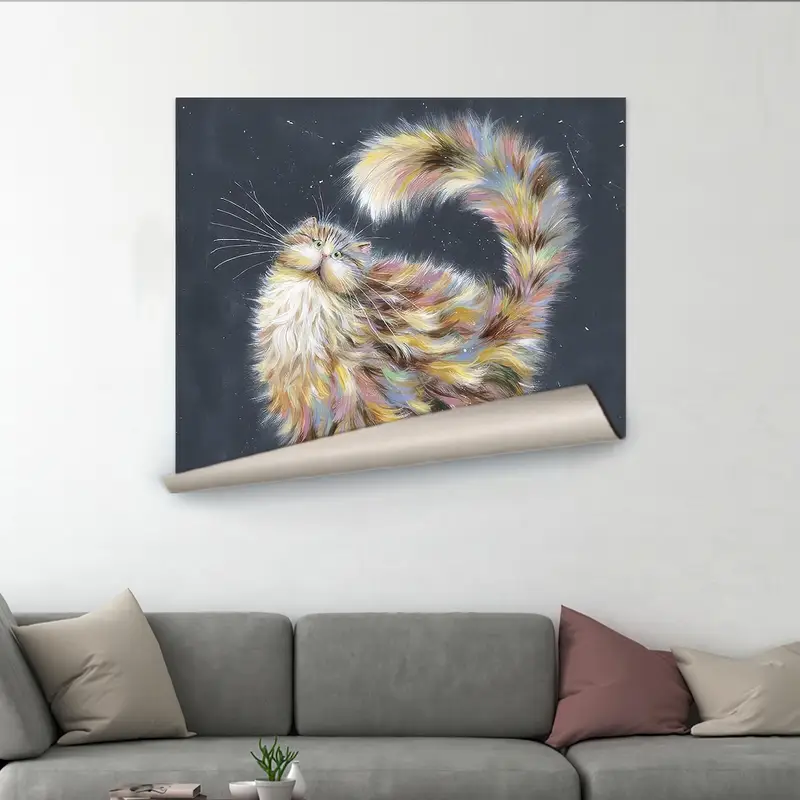 Modern Cute Cat Canvas Print for Cat Lovers' Kids Room