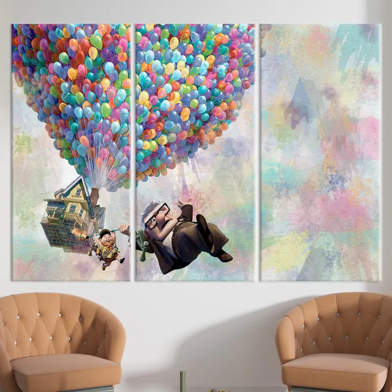 Up Movie Adventure Canvas: Carl, Russell, Balloons, Rainbow