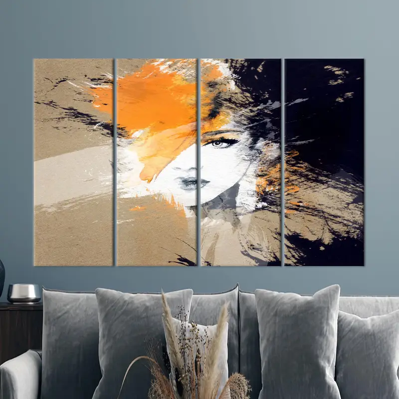 Elegant Abstract Woman Portrait Canvas Print - Vibrant Brown & Orange