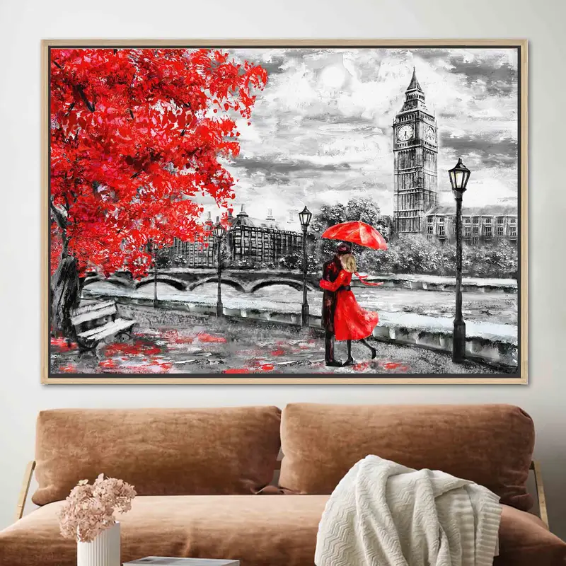 Romantic London Canvas: Big Ben, Red Umbrella, Valentine's Day