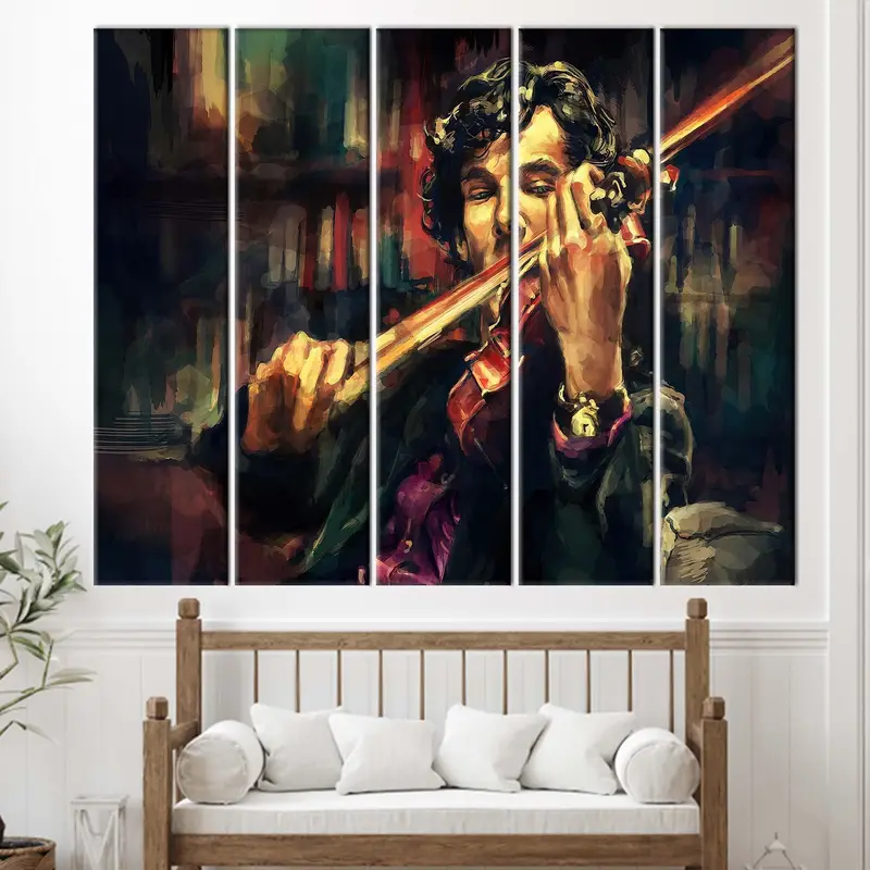 Modern Abstract Man Canvas: Unique Violinist Gift for Man Cave