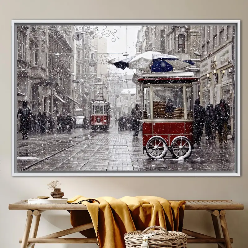 Istanbul Winter Canvas: Vintage Tram & Landscape Print