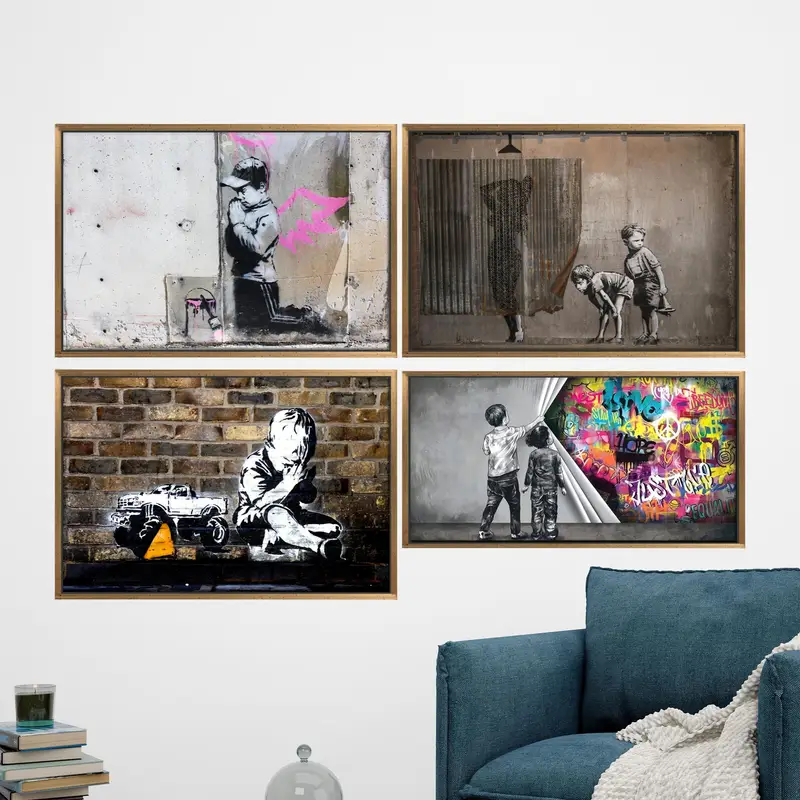Peeping Tom Boys Canvas: Banksy-Inspired Printed Art