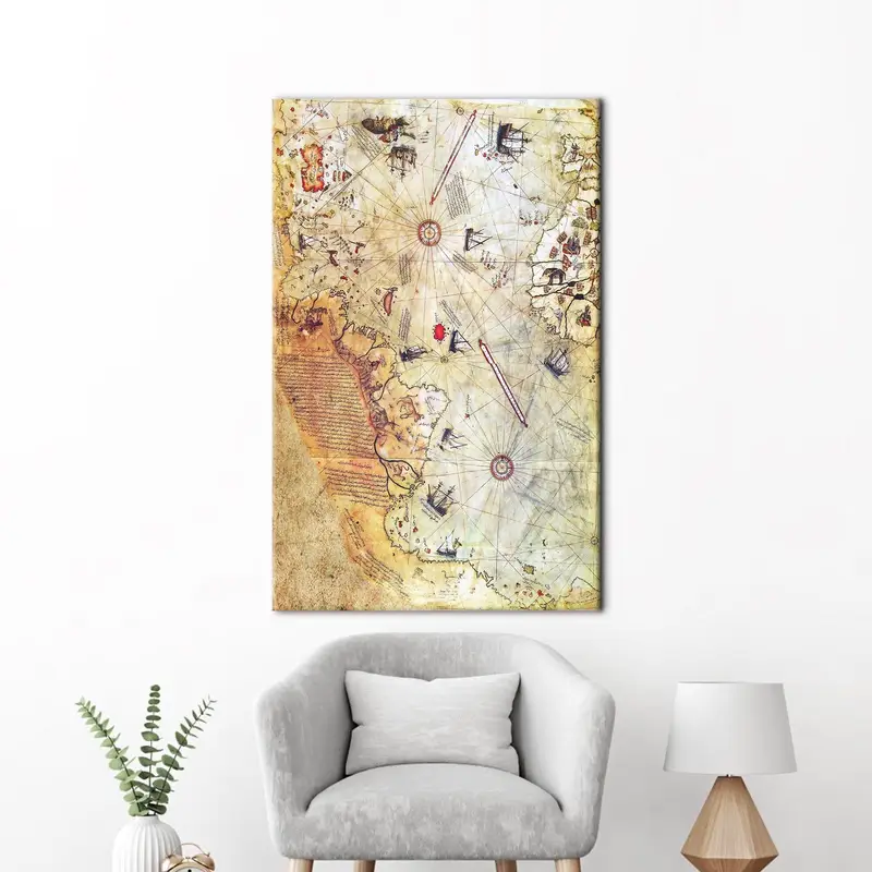 Vintage Piri Reis Ottoman Empire Map Printed Canvas Art