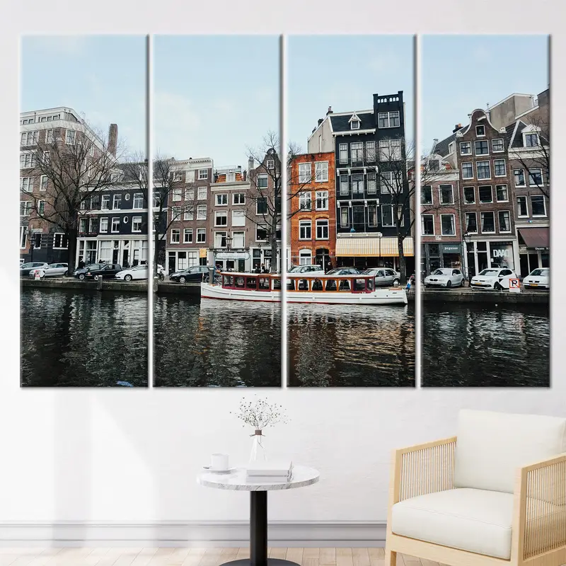 Elegant Autumn Cityscape Canvas: Modern Dutch Canal House Print