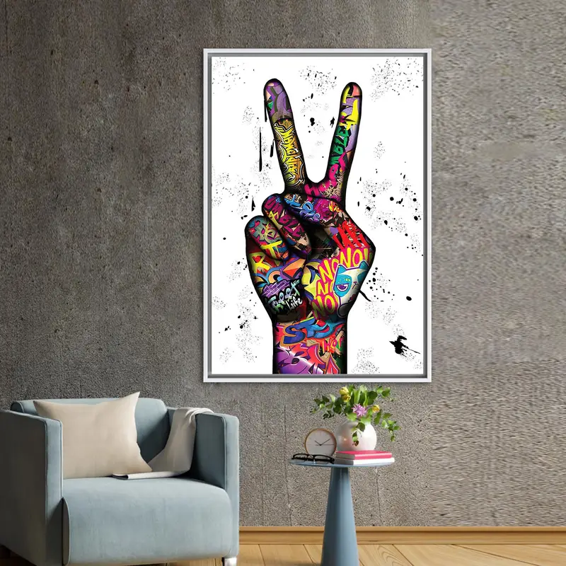 Trendy Colorful Canvas: Peace Finger Graffiti Abstract Art Print