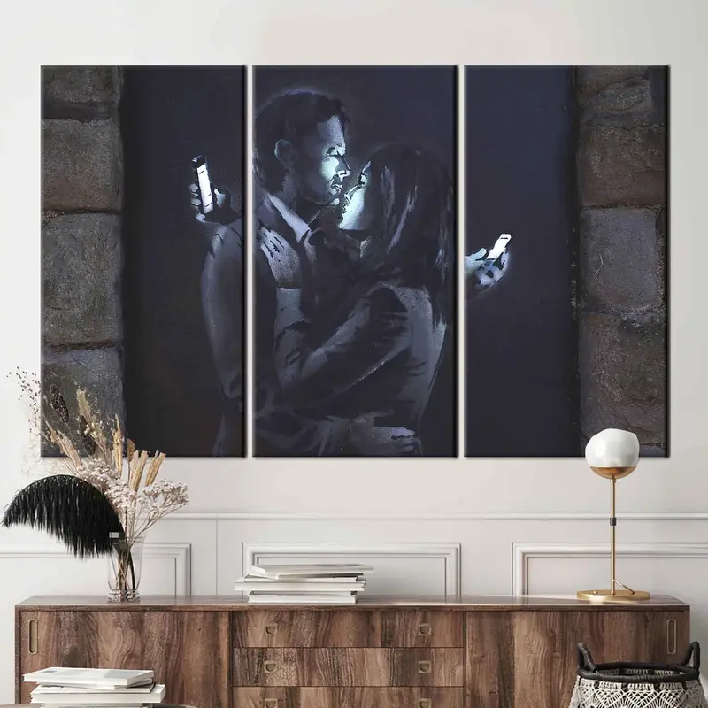 Elegant Printed Canvas: Banksy-Inspired Couple Graffiti Art
