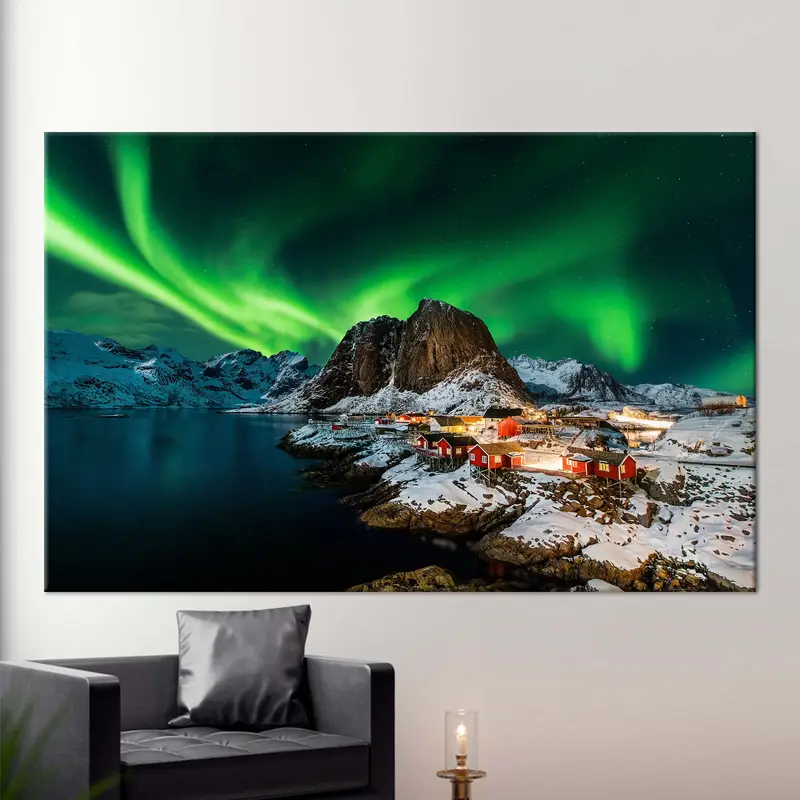 Enchanting Northern Lights Canvas: Lofoten Norway Night Landscape