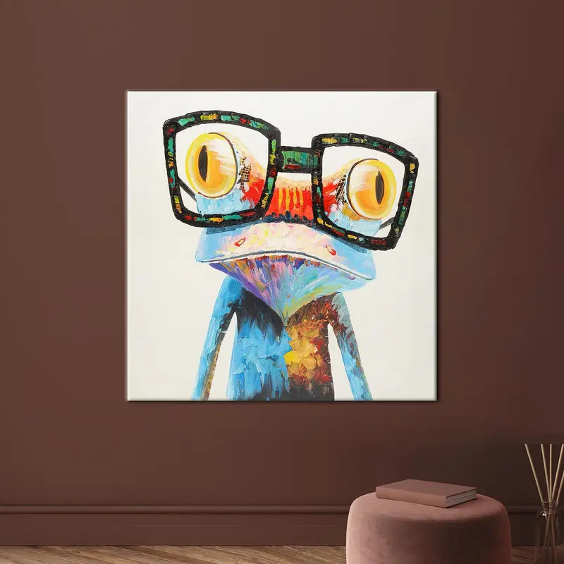 Modern Colorful Frog With Glasses Fun Animals Printed Canvas
