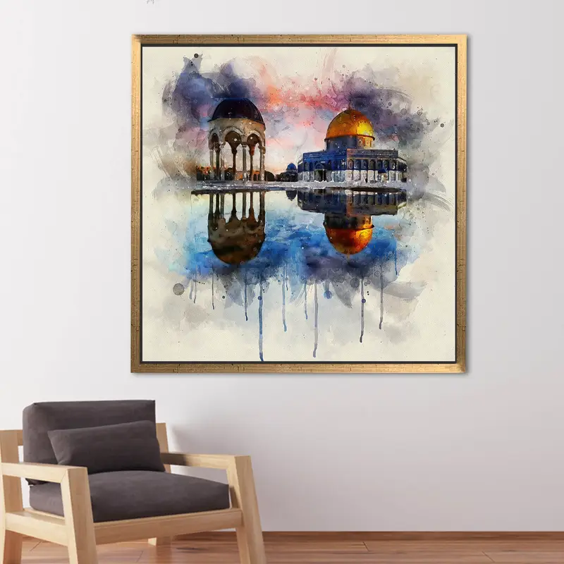 Elegant Masjid al-Aqsa Canvas: Mosque Landscape Watercolor Print