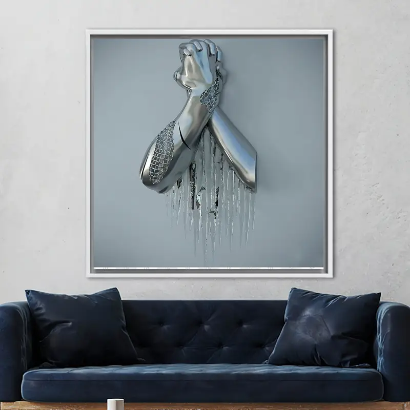 Trendy Metallic Hand 3D Silver Canvas Print - Contemporary Art