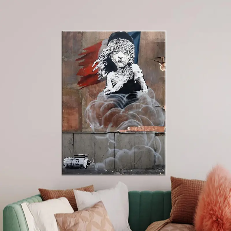Trendy Banksy Tear Gas Graffiti Canvas Print - Artistic Elegance
