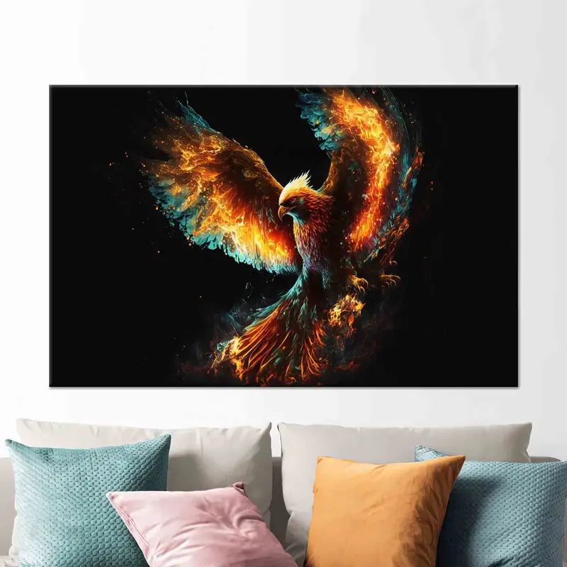 Trendy Phoenix Bird Black Canvas Print for Office Decor
