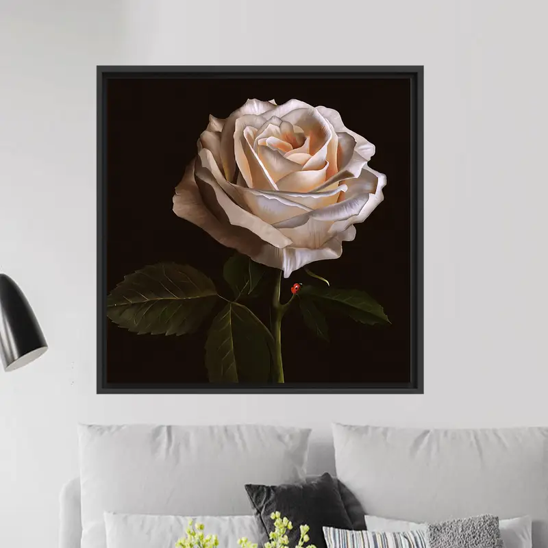 Modern Rose Ladybug Canvas: Trendy Art for Rose Lovers