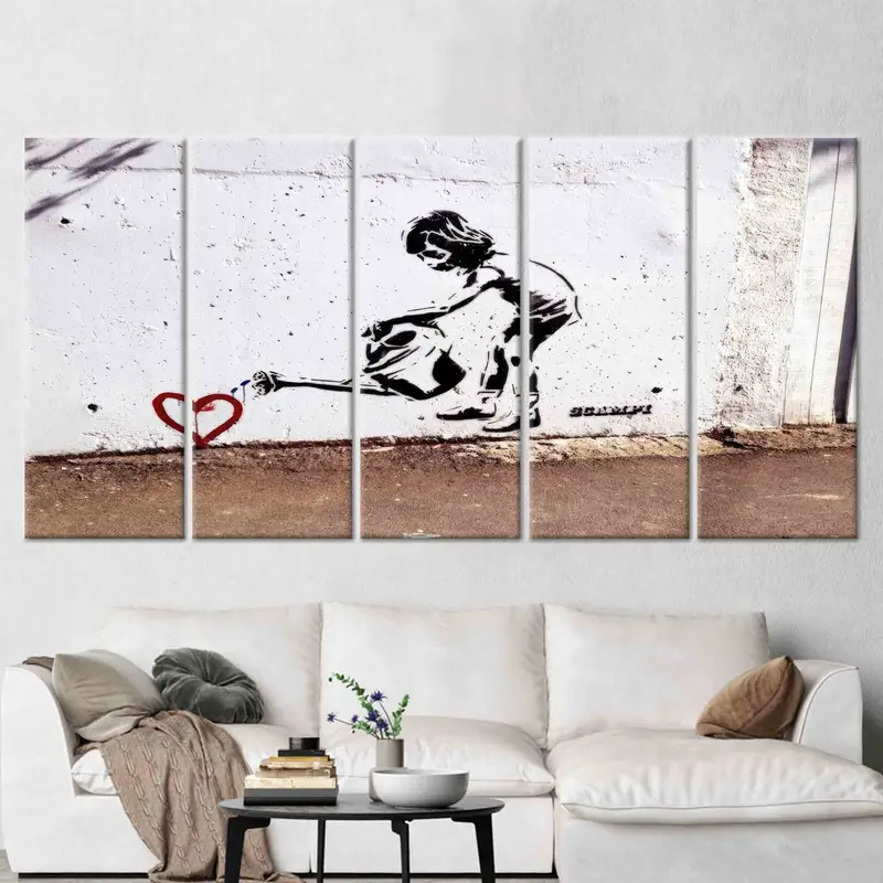 Enchanting Banksy Canvas: Children, Water, Love, Heart, Art
