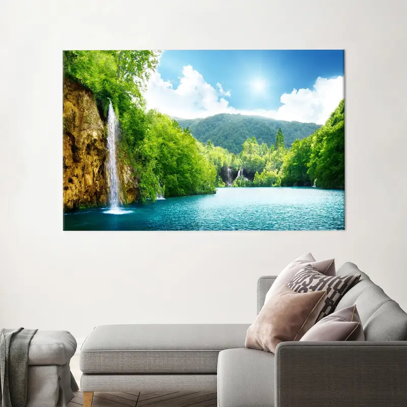 Elegant Waterfall Forest View Printed Canvas - Nature's Serenity