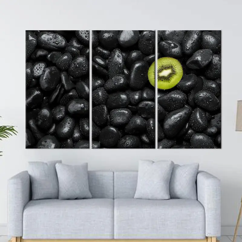 Trendy Kiwi Black Stone Pattern Printed Canvas for Elegant Kitchens