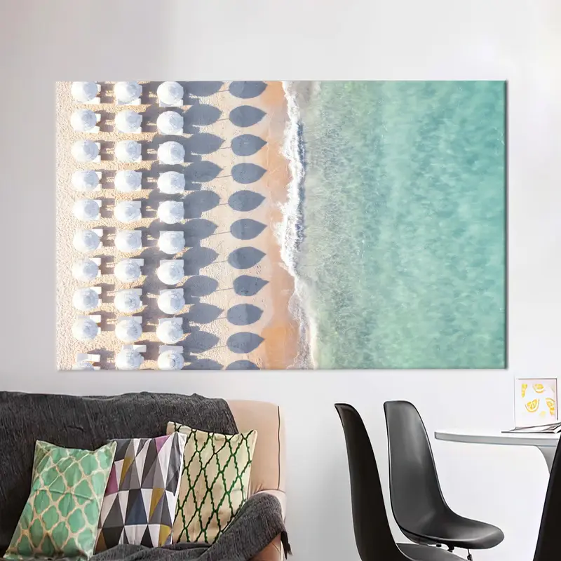 Elegant Coastal Canvas: Ocean Waves & Beach Landscape Print