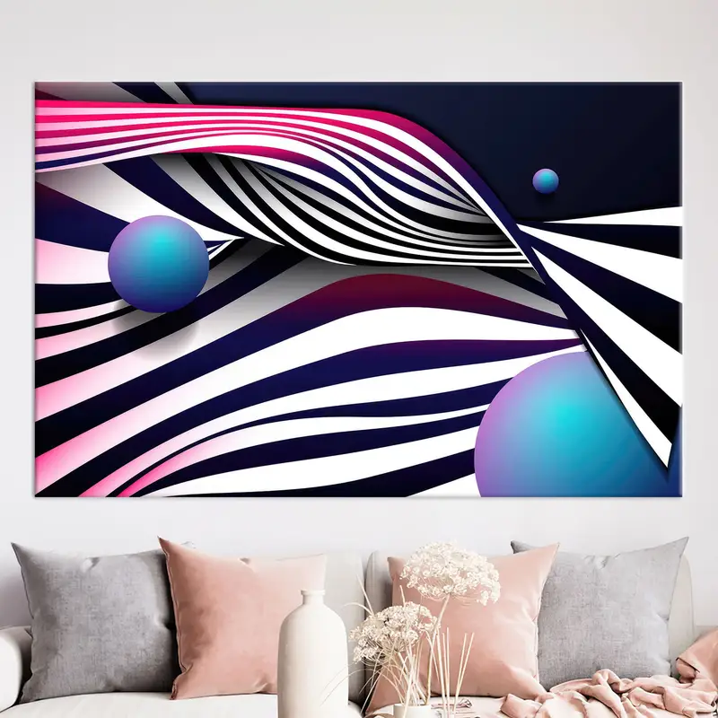 Abstract Black & White Blue Canvas: Virtual Art Elegance